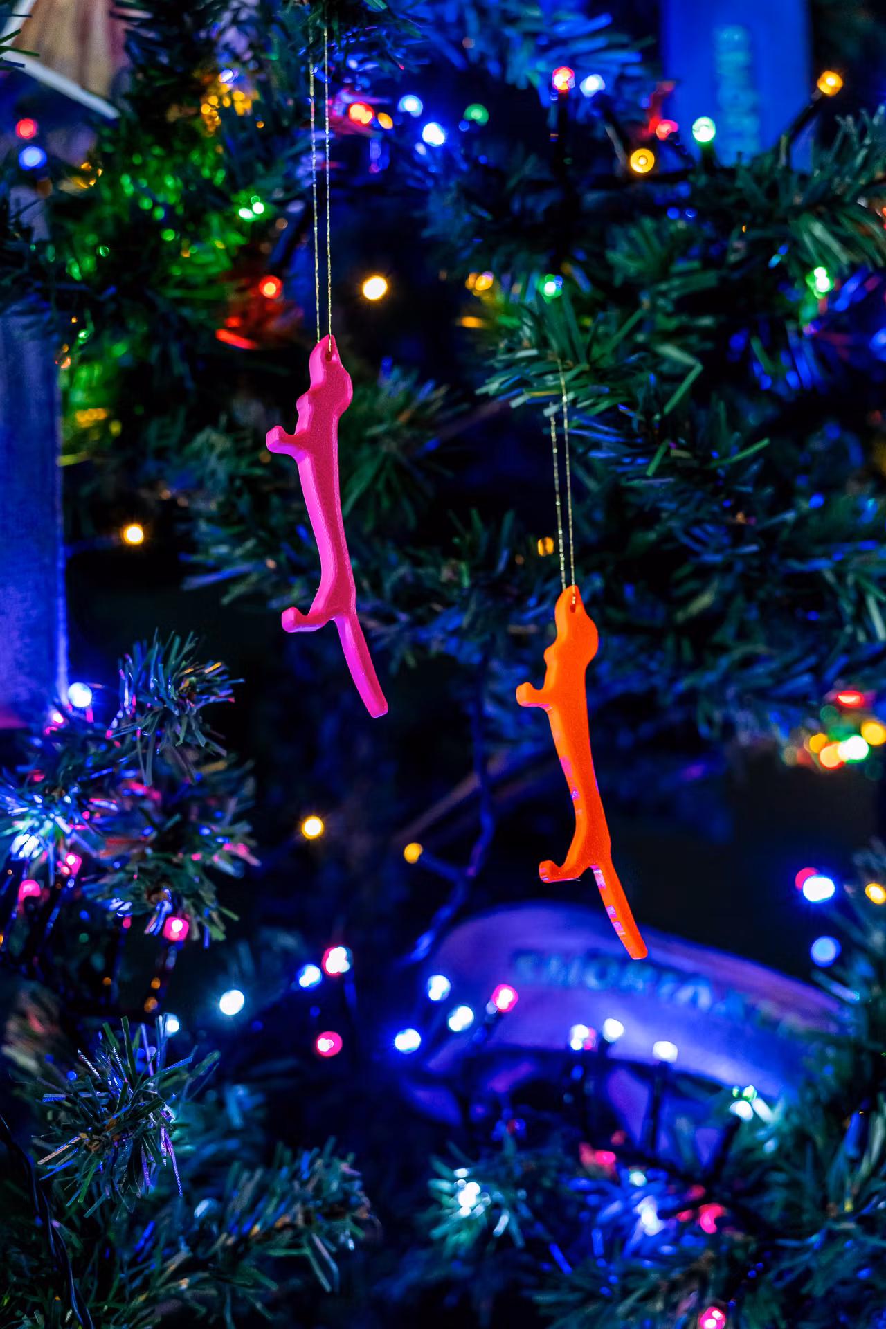 Pynta julgranen med det finaste som finns: SMÖRTAXAR. "Smörtaxarna" är 3D-printade och finns i röd-glitter eller neon (rosa + orange). Säljes i par (2 st).